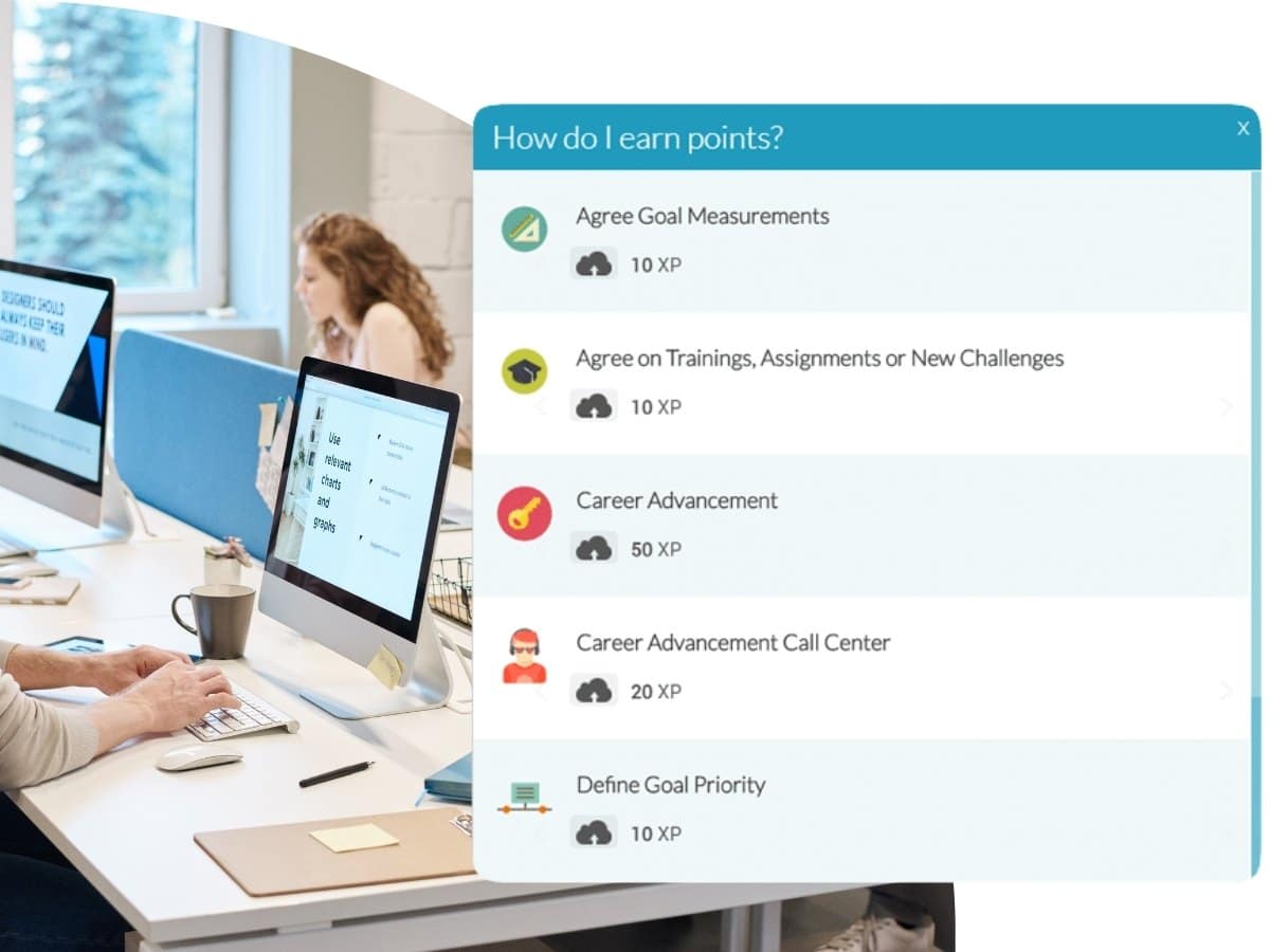 The Mambo.io gamification software allows you to define a variety of rewards that align with your business objectives. Recognise employees and customers for taking action whether it is a one-off, progression towards a goal or completing a business process.